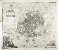 fuori testo e 1 grande mappa più volte ripiegata. Frontespizio con elegante bordura architettonica, 8 testatine, 5