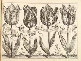 Rarissima raccolta di incisioni sui tulipani, i narcisi, gli iris e altri fiori, popolate inoltre di uccelli, farfalle e mosche di varie