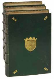 quattro angoli, ripetuta ai comparti del dorso, titoli in oro ai dorsi, dentelles alle unghiature, tagli dorati. (3)