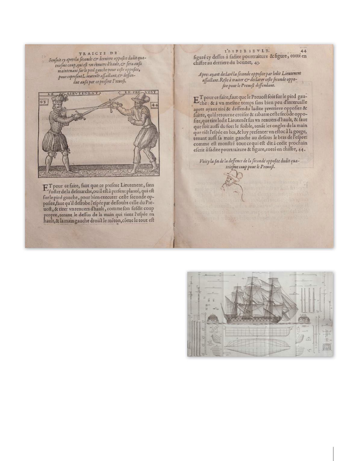 d’escrimeurs à mi-page, le tout gravé sur bois.