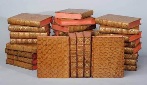 30 volumes in-4 reliés plein veau époque, dos à nerfs à caissons ornés, tranches