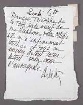 12, sur feuillet pneumatique, portant imprimé au verso : «Arletty, 14