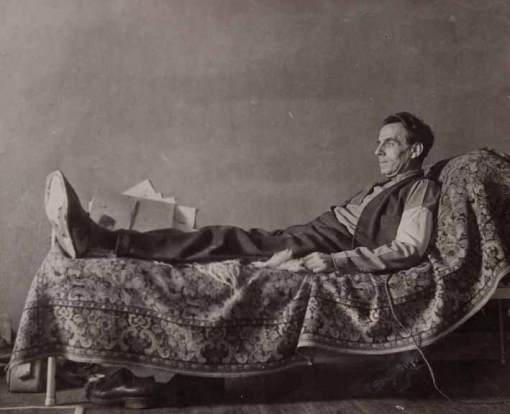L’écrivain allongé sur son lit à l’époque de son incarcération au Danemark.