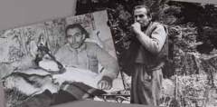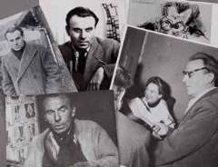 L’écrivain dans son lit avec son chien et dans son jardin, années 1950.