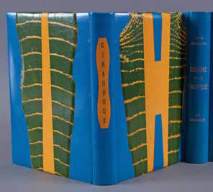 Reliure box bleu ciel, dos lisse portant le nom de l’auteur sur une pièce