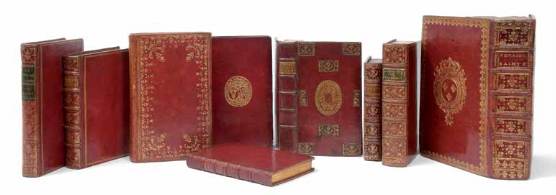 encadrant les plats, armoiries aux centres, tranches rouges (reliure de
