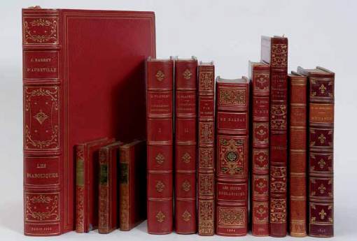 Un volume grand in-4°, plein maroquin rouge, dos à nerfs orné, triple