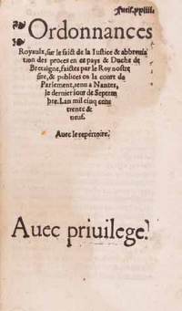 vilèges de Bretagne, page de titre manquante et volume commençant