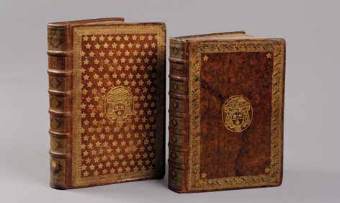 ornés, titre doré, les 2 plats semés de fleurettes, bordés d’une large roulette,