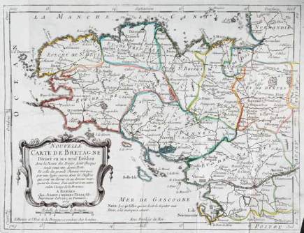 lin fils, 1739, 3 parties en 6 vol. in-12, une grande carte de Bretagne