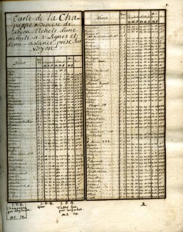 Relevé exhaustif sous forme de tableaux, de toutes les longitudes et latitudes des villes du Royaume de France, par