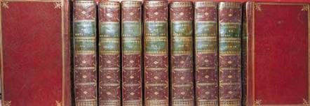 1744. 5 volumes in-8 ; maroquin rouge de l’époque, triple filet