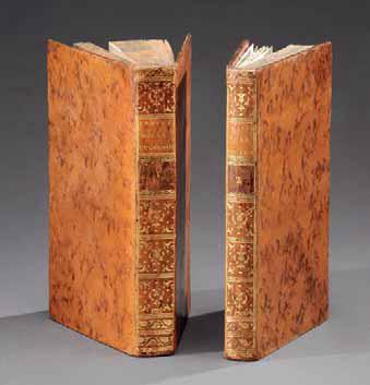 Deux volumes, in-8, de CXLIV pp., 261 pp., (1) p. - puis de la p. 264 à la p. 436 (pagination continue), (1) f., 94 pp., (1) f., pleines reliures de l’époque en basane mouchetée. Dos lisse très ornés et dorés portant les titres dorés, filet doré sur les coupes, tranches marbrées, réunis dans un étui de carton. Supra libris doré en queue des volumes, ex-libris manuscrit discret sur les pages de faux-titre “Bouillé” , (le gouverneur de la Guadeloupe ?).