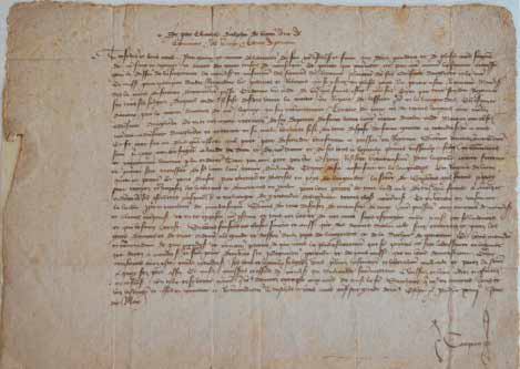 . Liasse de 3 parchemins, l’un scellé par un sceau en cire brune (3,5 cm de diamètre, empreinte faible).