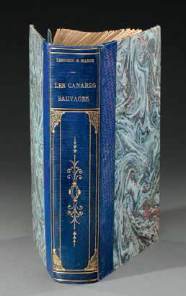 cartonnage éditeur imprimé et illustré. Dos refait en toile verte portant