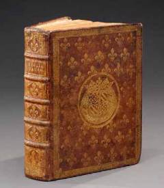 dorées, tranches rouges, armoiries dorées au centre des plats. Usures à la coiffe et aux coins inférieurs, ex-libris manuscrit