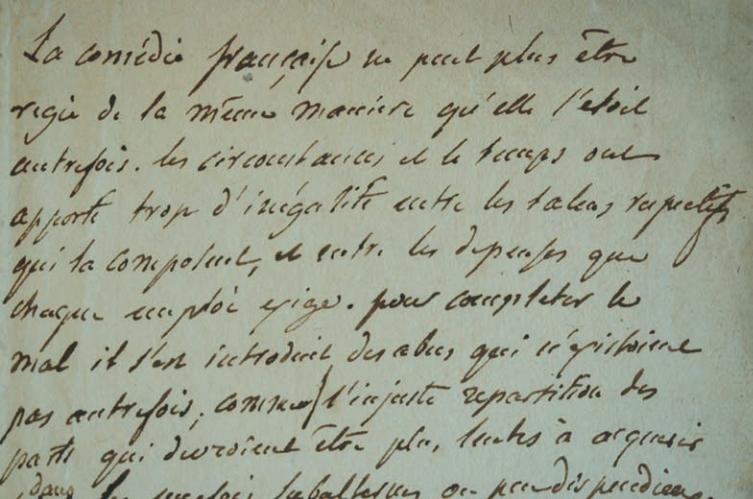 [...]”. [Talma, exclu en 1791, sera réintégré en 1799 et deviendra l’acteur fétiche de Napoléon].