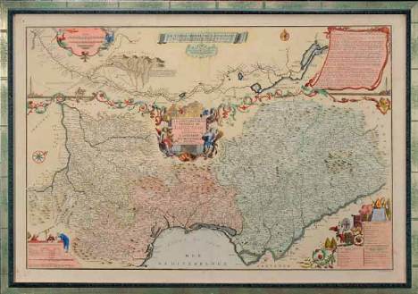 D’Aigues Mortes au fort de Brégançon. Belle carte dans un encadrement moderne de 36 × 45 cm.