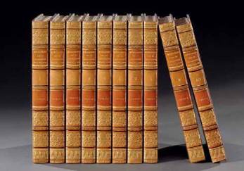 reliures de l’époque en veau havane. Dos à nerfs très ornés et dorés portant les titres dorés.