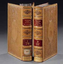 ornés à froid et doré portant les pièces de titre et de tomaison en maroquin brun, plats entièrement recouverts d’un décor