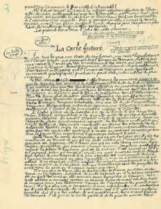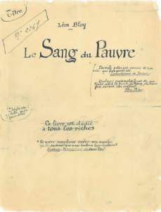 Brouillon du prière d’insérer : « “Le Sang du Pauvre, c’est l’Argent”. Telle est la formule saisissante, en laquelle