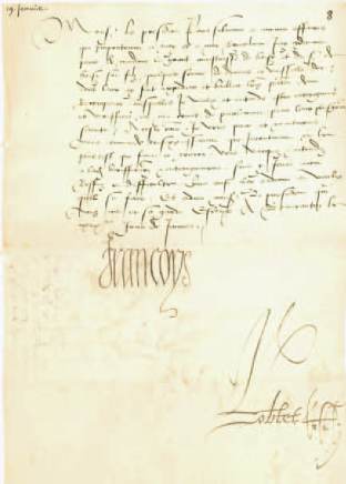 (1494-1547). 7 L.S. « Francoys », janvier-février [1521], au Premier Président Jean de