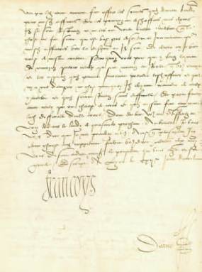 autographe « Vre treshumble et treshoubeissant subjet et serviteur Charles », Chantelle 22 février [1522 ?],