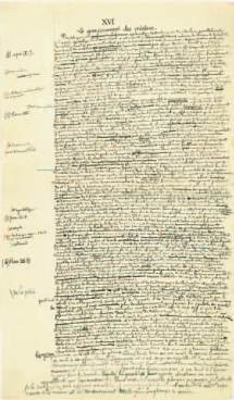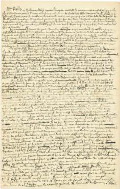 d’une minuscule écriture, présente des ratures et corrections, avec des additions marginales appelées aux crayons