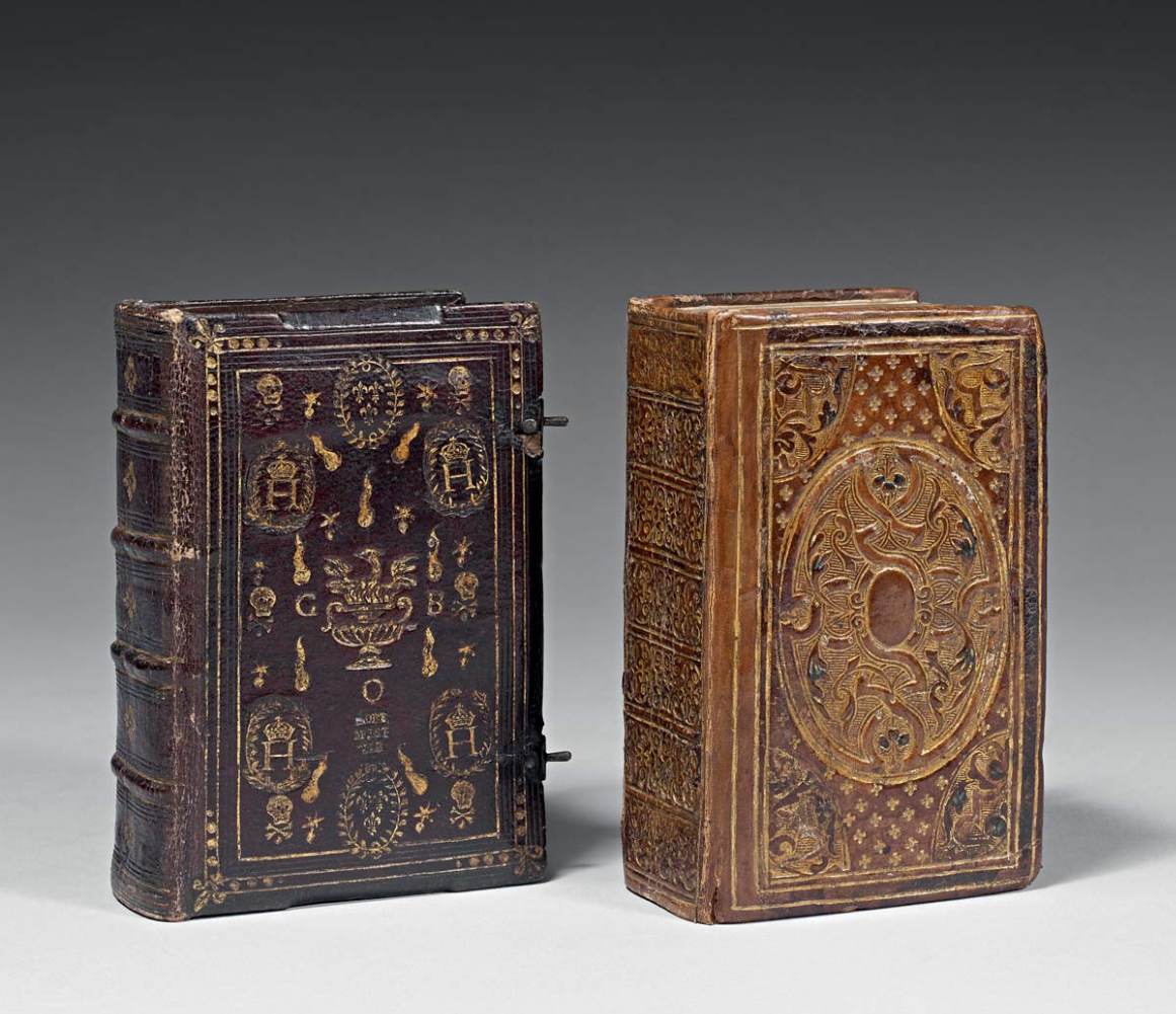 entièrement ornés d’un décor de petits fers dorés à symboles mortuaires et lacrymaux, avec armes