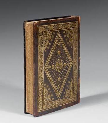 brun, plats entièrement ornés d’un décor doré à deux compartiments, dos à nerfs orné, tranches