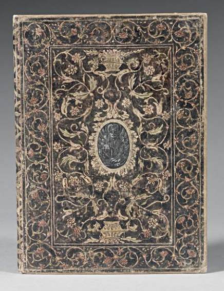 in-8° carré (150 x 192 mm), veau brun, double encadrement de filets et fines roulettes dentelées