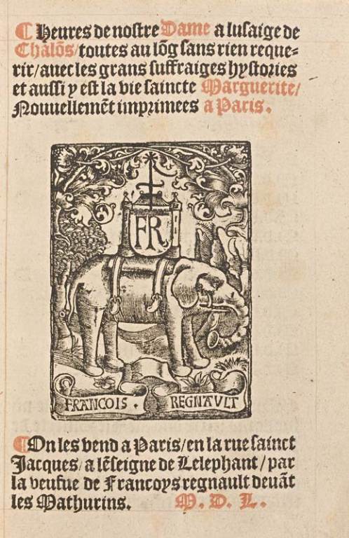 Francoys regnault, // demourant en la rue Sainct Jacques, a // lenseigne de Lelephant deuant les