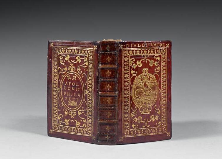 di Aldo, 1541. In-12 (96 x 155 mm), maroquin rouge, titre doré en tête du premier plat, large décor