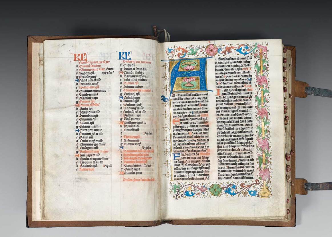• DIX GRANDES LETTRINES EN ROUGE & BLEU, ORNÉES D’UN DÉCOR FLORAL VERT et