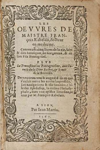 Les // Oevvres de // Maistre Fran-//çois Rabelais, docteur // en medecine. // Contenant cinq