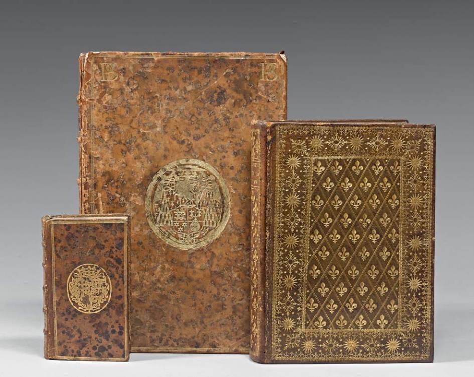 » aux angles, armoiries au centre, dos à nerfs orné du même monogramme,