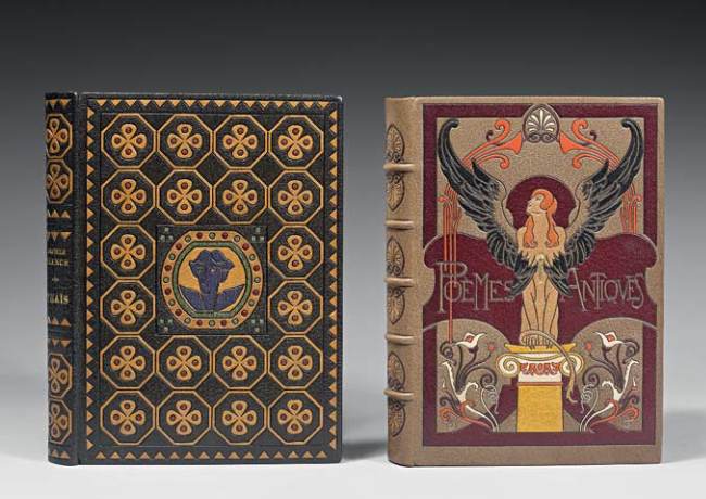 maroquin brun à coins, dos lisse orné d’une grecque mosaïquée de maroquin noir, tête dorée,