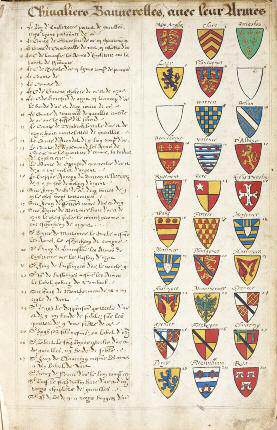 87 pp. ornées de nombreuses armoiries aquarellées avec textes manuscrits. Mouillures.