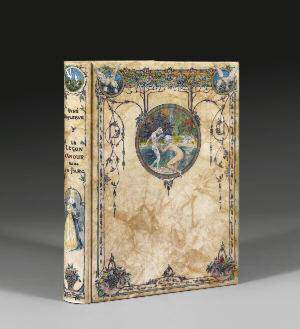plats, pastille centrale mosaïquée de maroquin brun et veau vert portant le titre, tranches dorées sur
