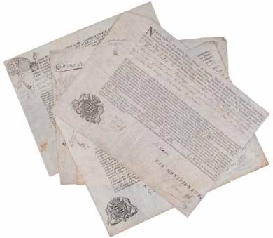 de parchemin, préimprimée et renseignée, signée et contresignée.