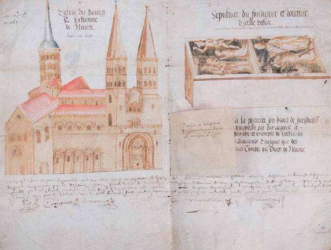 Il s’agit peut-être de la seule représentation vraiment ancienne du tombeau de Guillaume, comte de Nevers (mort en