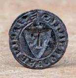 Écu portant un R, sommé d’un fanion. Légende en orle.