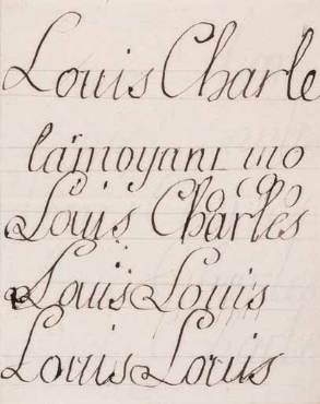 : on a parfois confondu les devoirs d’écriture du futur Louis XVII (Louis-Charles), avec ceux de son frère aîné Louis, le « premier Dauphin »,