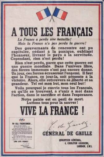 écrit sur le brouillon aujourd’hui conservé au musée de la Libération, à Paris) destiné à être placardé dans toutes les villes anglaises. Alors que les appels