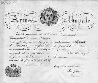 j’ai confirmé le 3 juillet 1832 / la nomination de Mr … / au grade de … dont il a rempli / les fonctions dans la