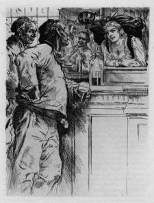 un cuivre encré, deux suites des hors texte : une tirée en sanguine l’autre en noir, chaque épreuve signée.