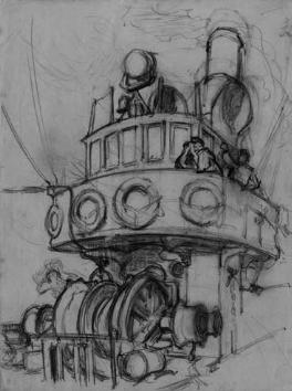 Volume in-plano composé de 10 grandes feuilles de 68 x 104 cm. dessinées à l’encre et coloriées au lavis. Ces plans