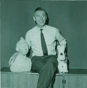 Hergé, portrait avec Tintin et Milou, c. 1945
