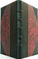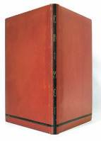 in- 8 plein maroquin orangé, dos lisse avec une bande de cuir noir se poursuivant sur les plats, lettres à la chinoise, contre plats