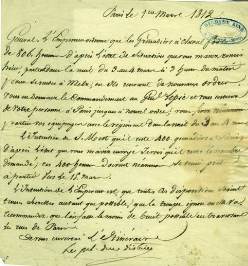 1812 ; 1 page in-4°, tache de mouillure et cachet bleu